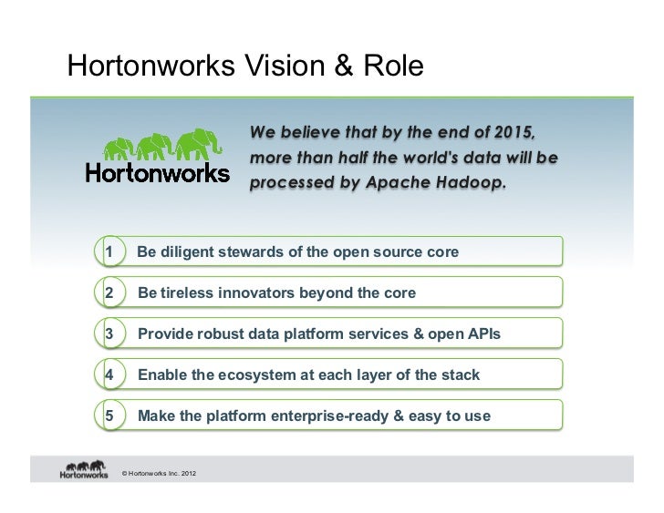 A growing ecosystem to build and deploy Big Data solutions. Hortonworks is the trusted source for information on Hadoop, and Hortonworks provides unmatched technical support, training and certification programs for ... Fetch This Document